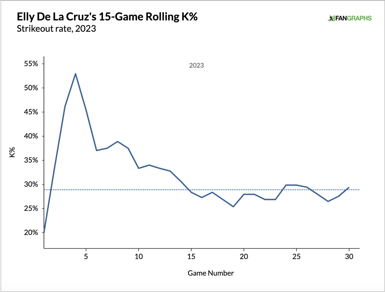 His 28.9 K% entering the break is right around league average. While it's still important to track his strikeouts moving forward, it clearly doesn't appear as if they will be a major issue for his rookie year production. That wasn't a given prior to his debut, and it's a big deal.