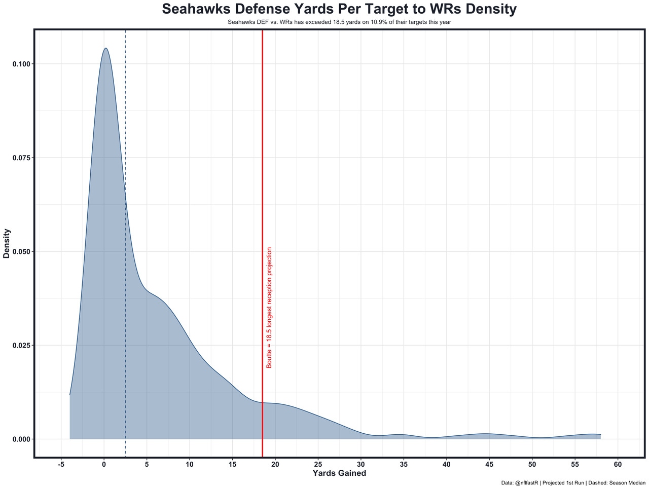 With Mack Hollins healthy, Boutte runs a route on 79% of dropbacks, so he's not necessarily a full-time player despite his elite downfield numbers. A wild 24.5% of his targets this year have resulted in catches of more than 18.5 yards this year. That's beyond unsustainable, however, even with an MVP-caliber quarterback! And the Seahawks have allowed only 10.9% of their outside WR targets to reach that 18.5-yard mark, despite their difficult strength of schedule. When removing Puka Nacua from that database, the Seahawks are allowing just 8.6% of their outside WR targets to reach 18.5 yards. That's unbelievably good...