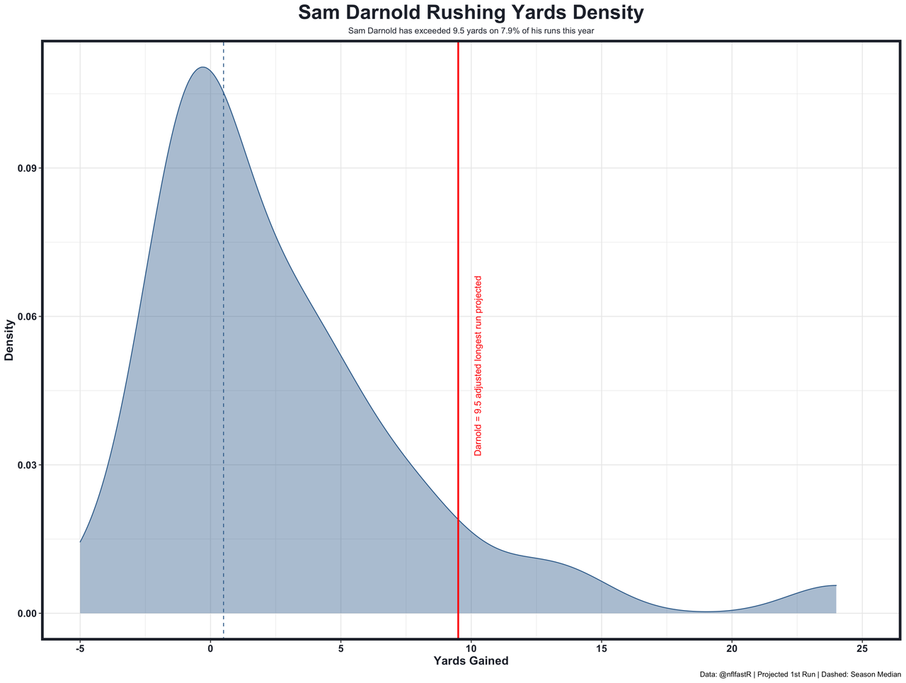 Unlike the other recent Super Bowl QBs, Darnold offers very little as a rusher. He only has 7 carries above his 5.5 longest yards projection all season long, and 2 of them were for exactly 6 yards. Underdog Fantasy users can move that projection to 9.5 yards (for a lower 0.68x payout), and Darnold has hit that mark on just 2 carries all season long (5% of runs). Without adjusting for opponent or game script, he'd need 3.9 carries for the odds to flip against us, and his current projection is at 2.5 carries. This is a good play if you are good with laying down a heavy favorite.