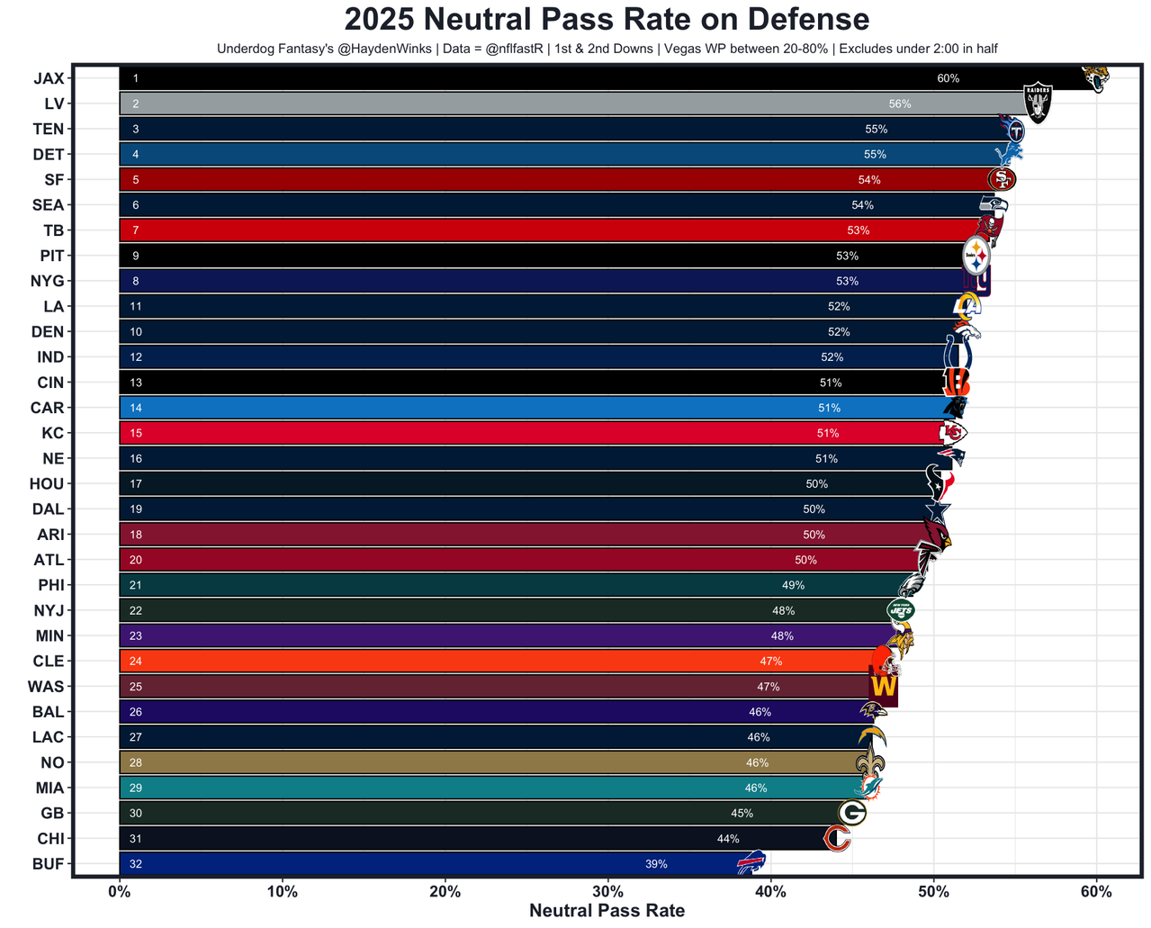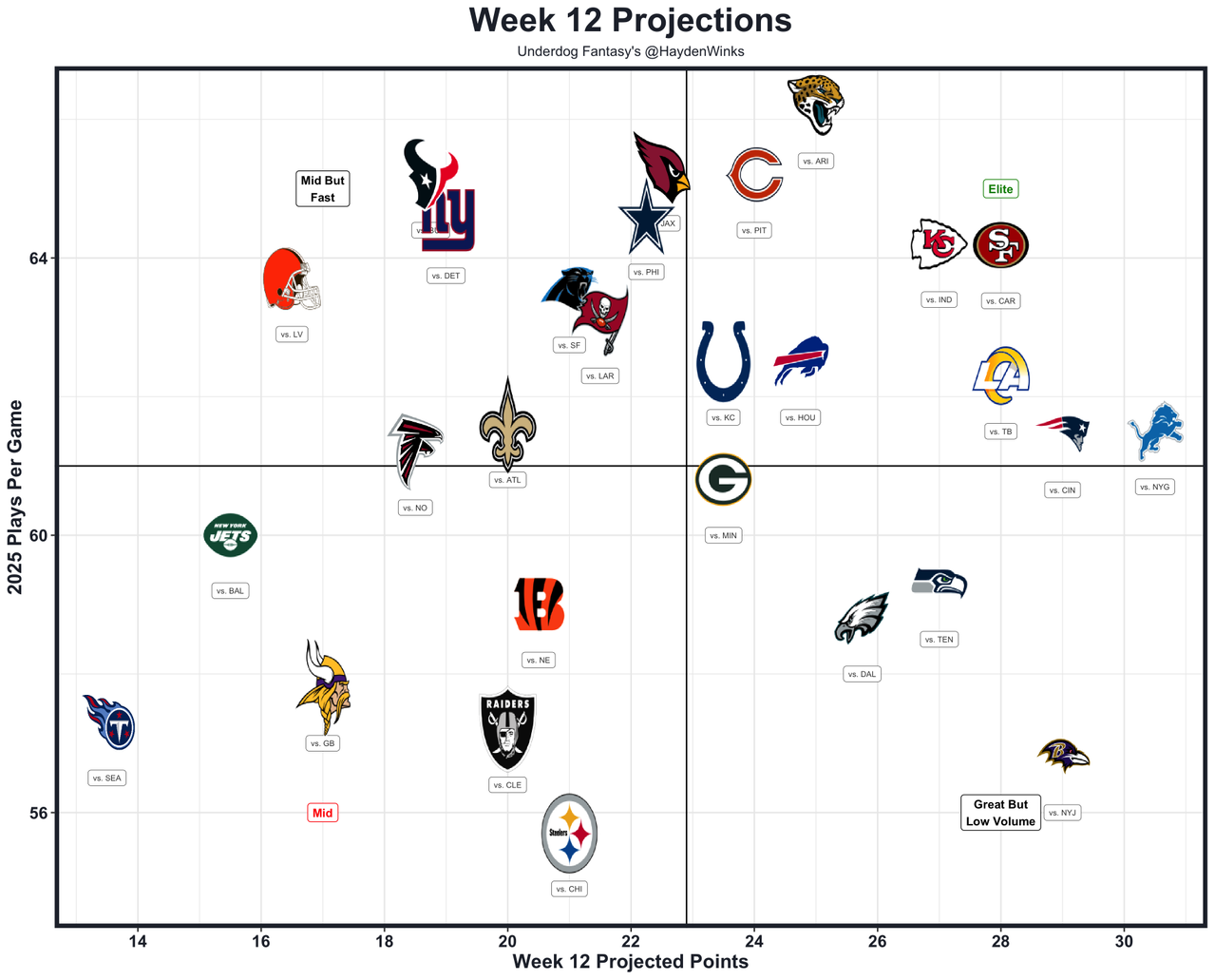 The Browns are 3rd-lowest in projected points (16.5), and quite frankly, I do like the lower on that. I'd be surprised if the Browns aren't the most run-heavy team in the NFL with Shedeur Sanders after completing 0 passes on 9 blitz dropbacks last week. He's been the RB38 on RB17 usage this month with the Browns completely caving in.