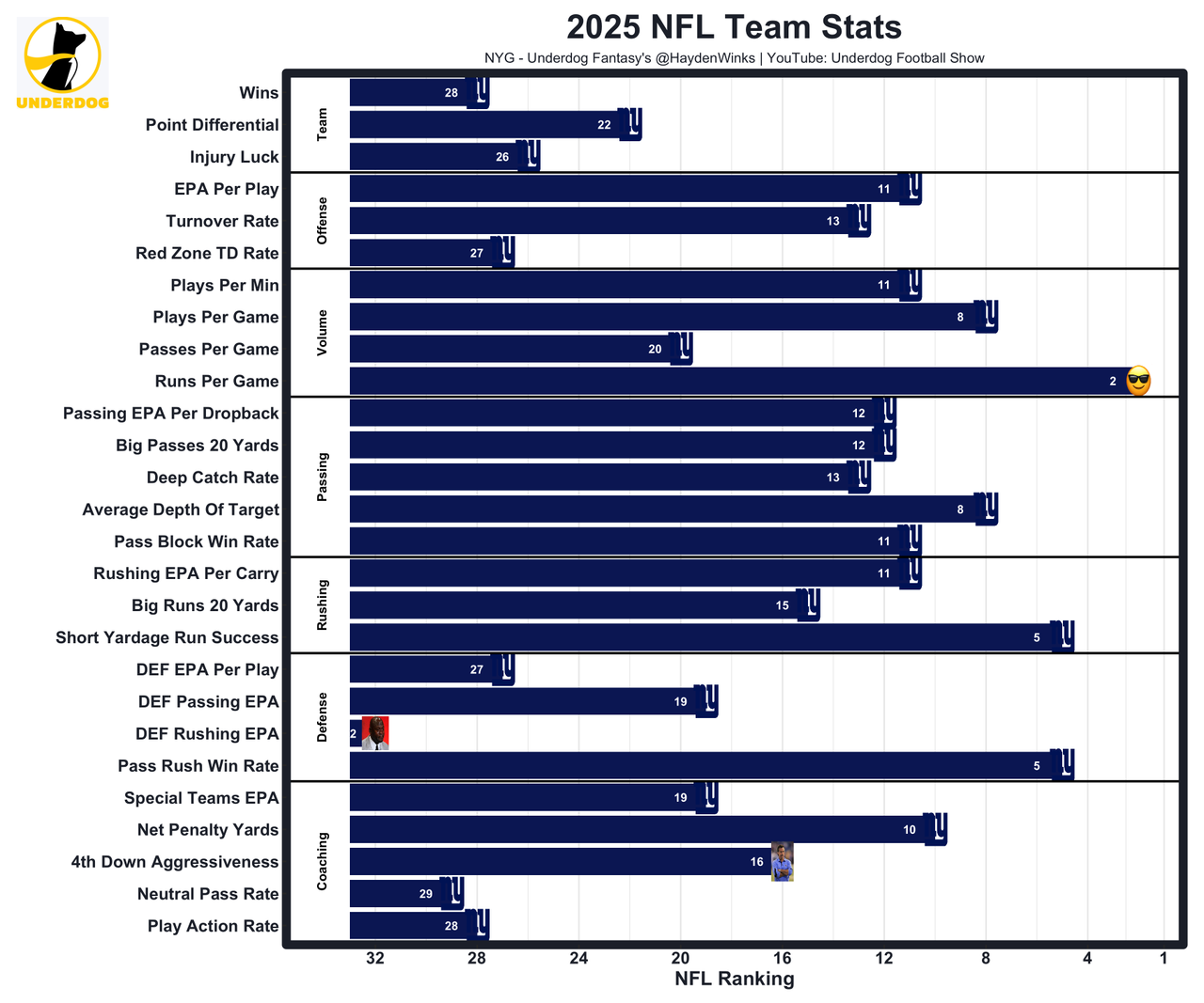 • DT: The Giants were 32nd in rushing EPA allowed. Insane, considering one of the DTs is Dexter Lawrence. Rakeem Nunez-Roches is a free agent, too.
