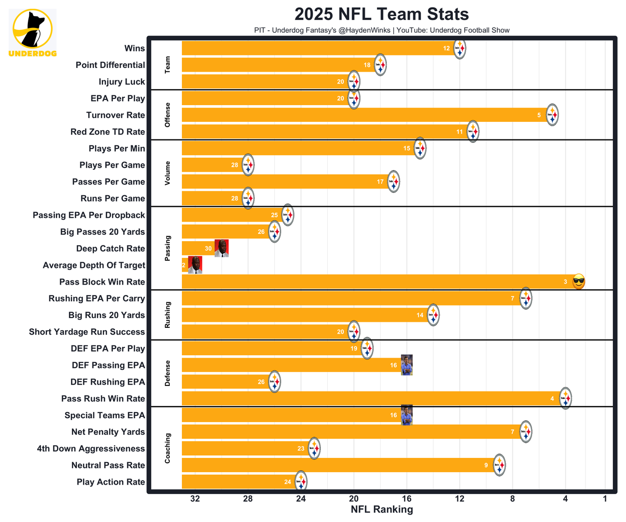 • QB: Aaron Rodgers is a 44-year-old free agent. Enough. The Steelers were 32nd in average depth of target last year.
