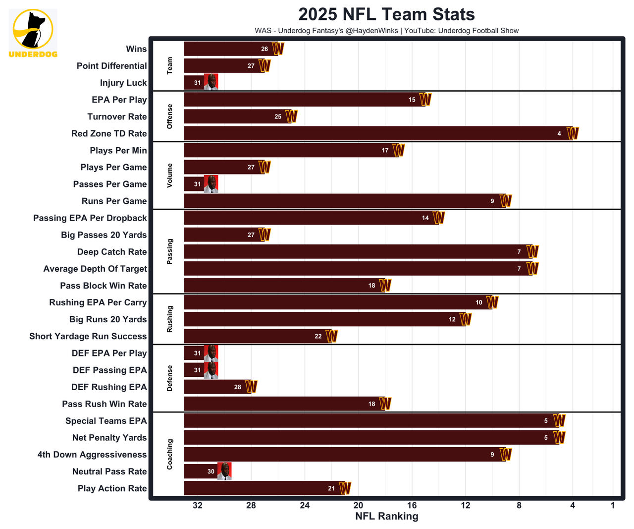 • LG: Chris Paul, not the basketball player, was bad. The Commanders were just 22nd in short-yardage rushing success rate last year.