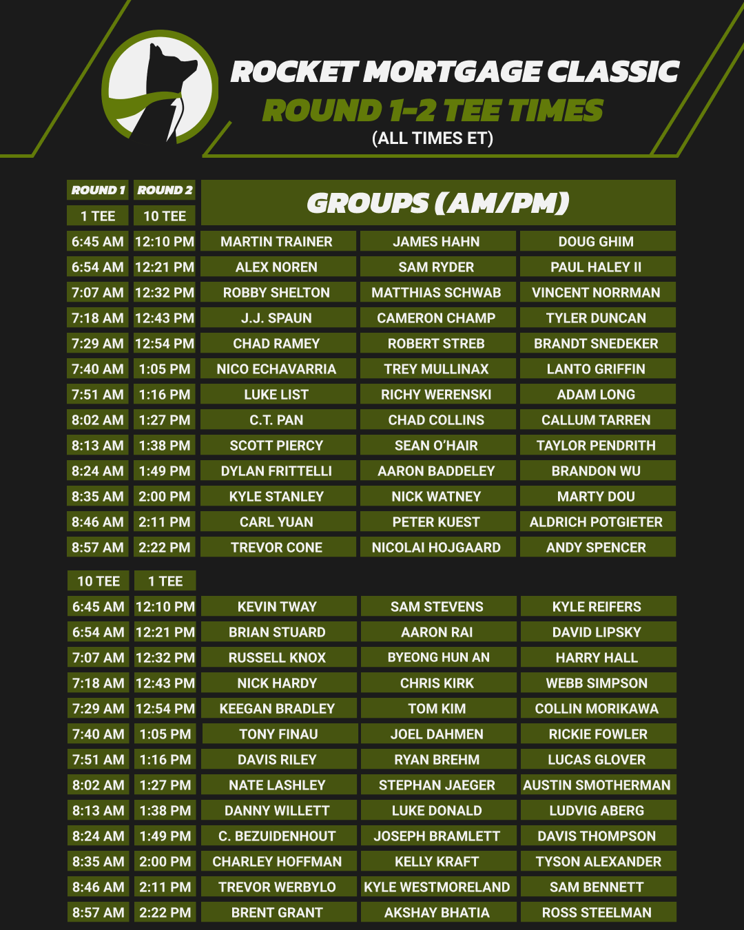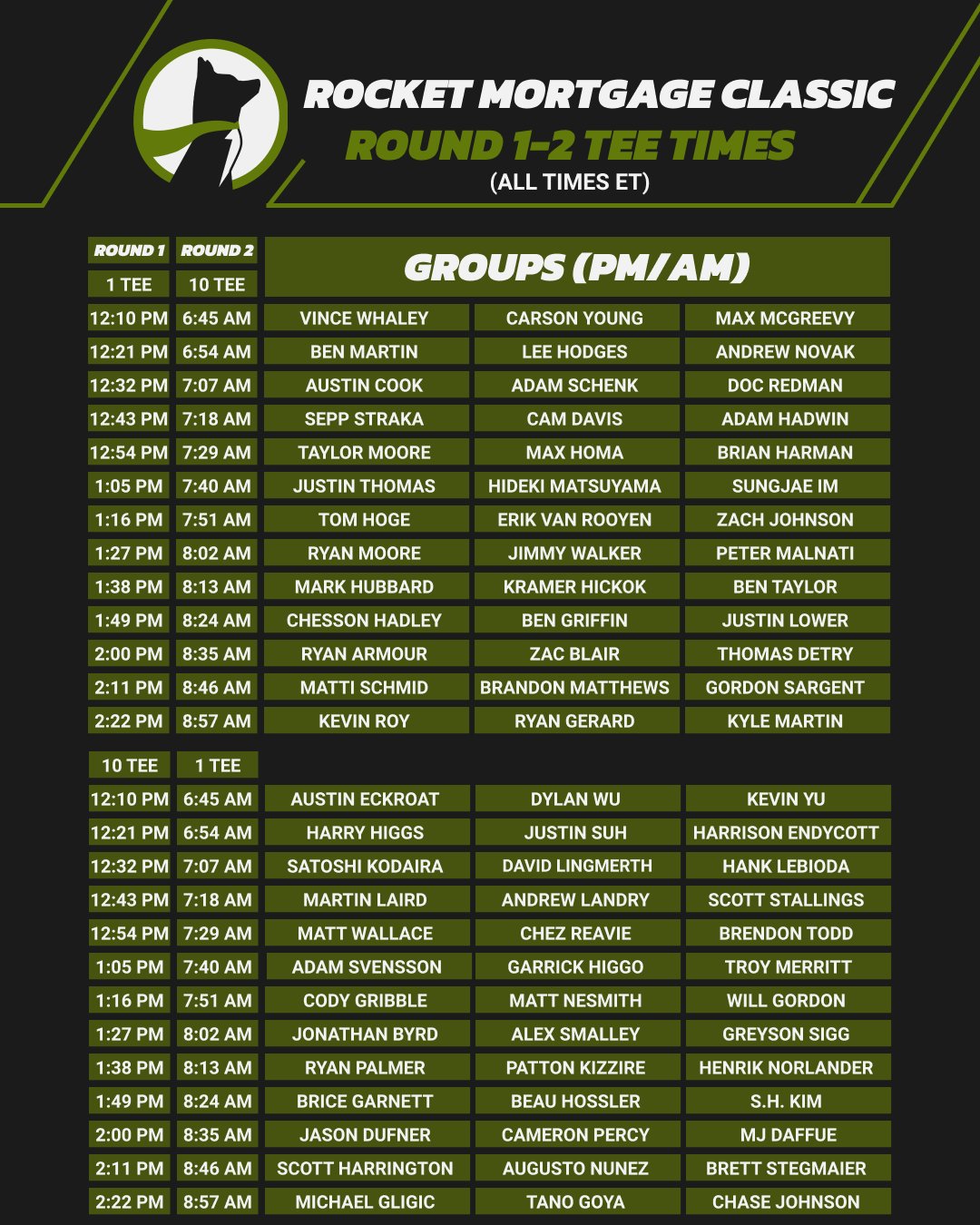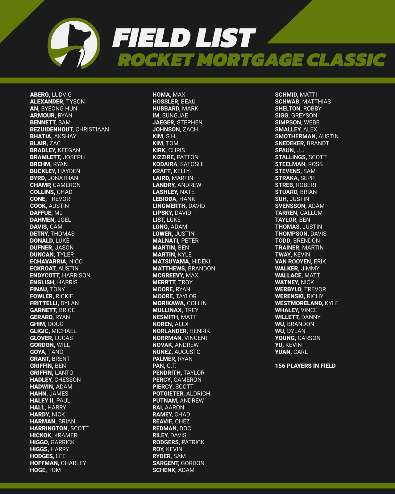 This column will provide any field updates, injury news, and other player notes in the days leading up to the Rocket Mortgage Classic.