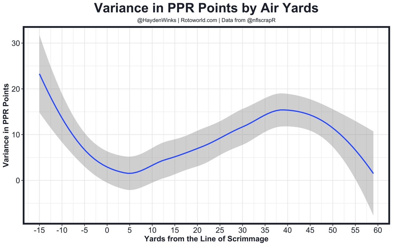 In fantasy football, this is key because while deep targets are extremely volatile (see below), they're still extremely valuable targets (see even more below).